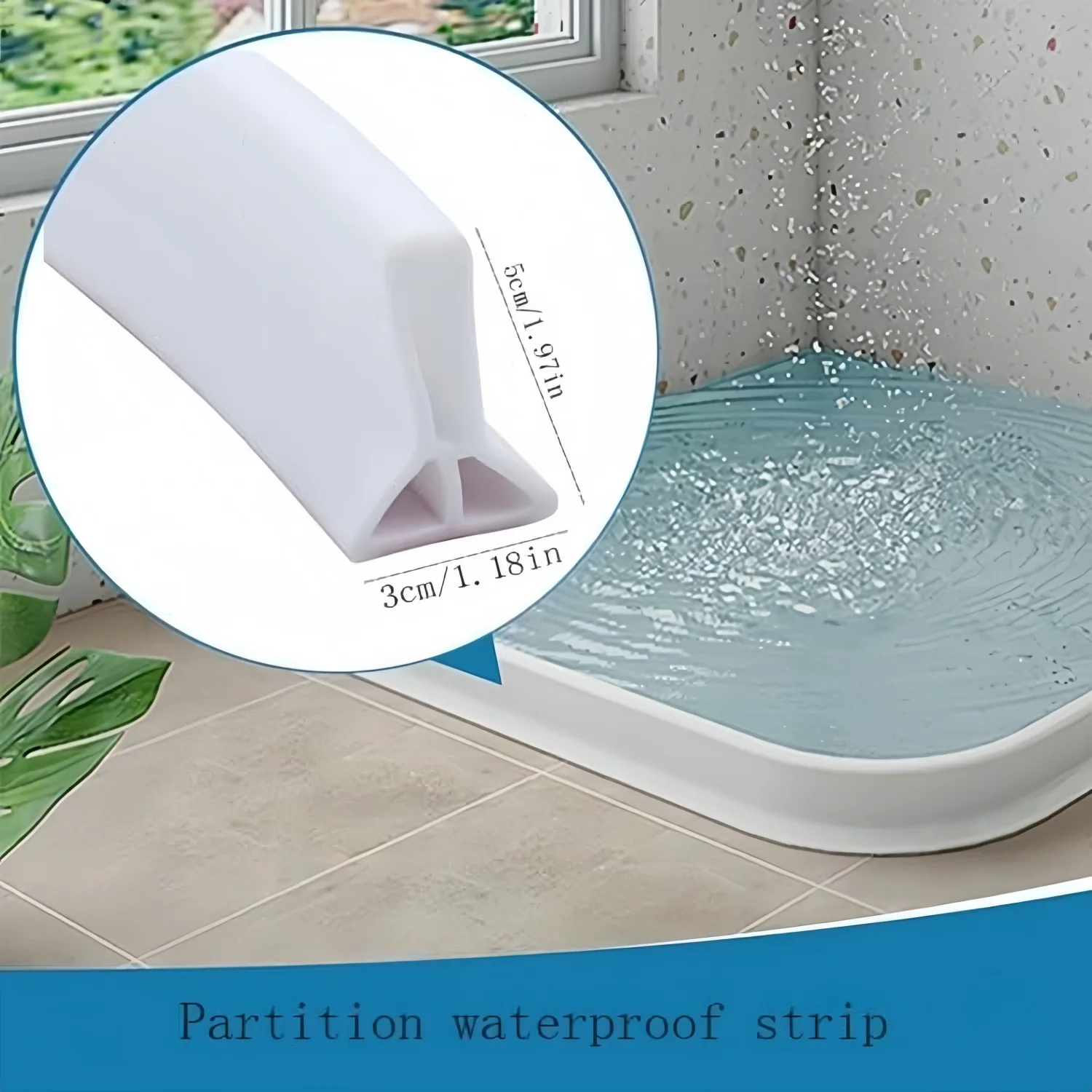 This Collapsible Self Adhesive Silicone Strip Trim Splash Guard, for gaps between door, windowsills, stoves, countertops, bathtubs and walls. This shower barrier, can be applied to shower pan, kitchen sink, toilet, desk and so on.