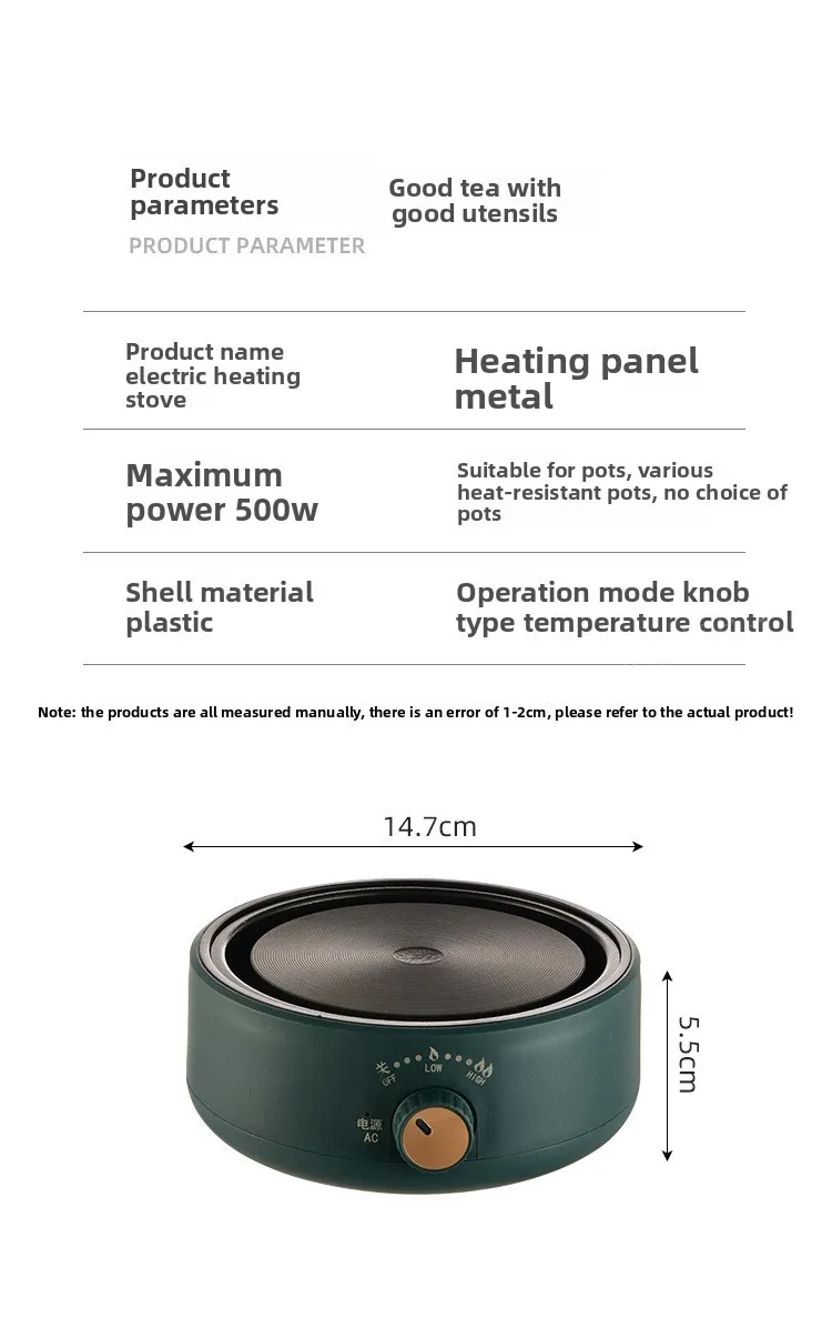 Electric Cookware Heating Base 500W Electric Heater Coffee Stove Home Manual Adjustable temperature Cooking Heater